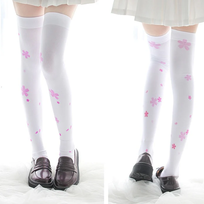 Cherry Blossom Striped Stockings