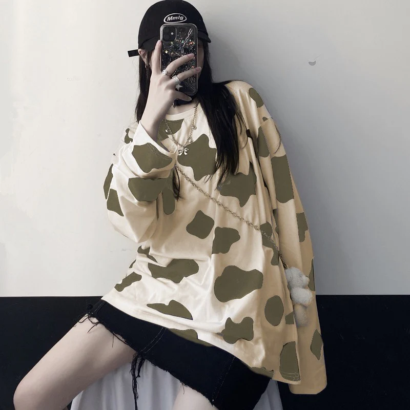 - Package includes: Cow Print Oversized Long Sleeve Top