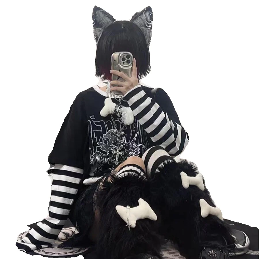 Emo Striped Sleeve Anime Femboy T-shirt