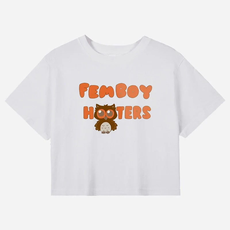 Our Femboy Hooters Shirt is made with premium cotton, combines the iconic Femboy Hooters letter printing with a trendy crop silhouette, perfect for fashion-forward individual. 🦅👚