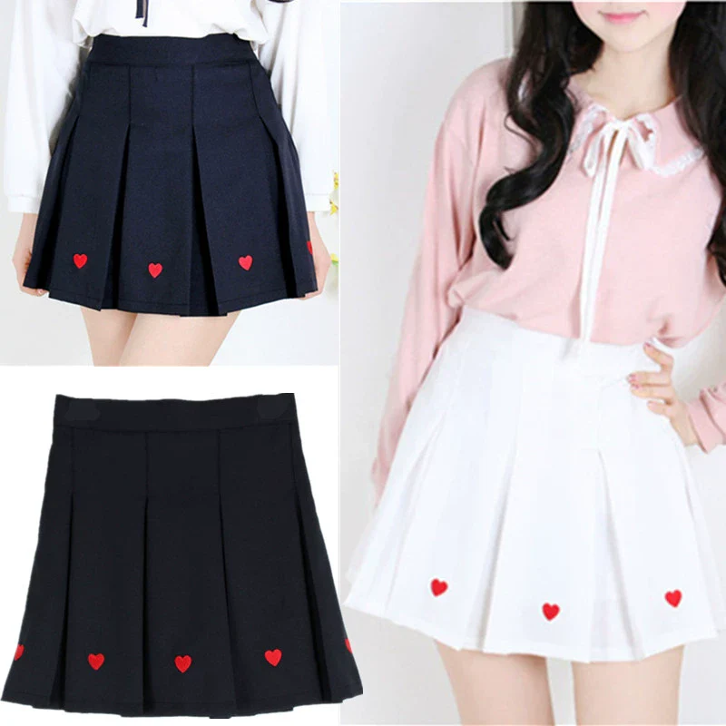 Heart Embroidered Femboy Pleated Skirt