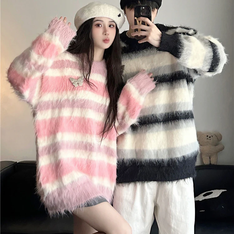 Designed for femboy couples who love to match their outfits! Made with soft mohair, features pastel stripes for a cute and cozy look. Pecfact for femboy fashion enthusiast.