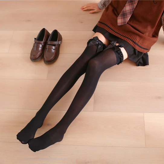 - Knee-high socks: 80D velvet, available in ruffled ribbon and lace. Sock length is about 40CM, a little below the knee