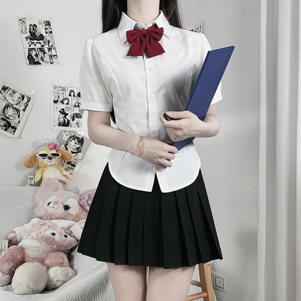 This white preppy shirt by Femboy Outfit, features a fitted waist and short sleeves, great for a flattering and feminine look. A classic short sleeve shirt in white. Made from high-quality polyester, keep you cool and stylish, suitable for the summer season. Show off your figure in this preppy shirt, ensure durability and a flattering fit.